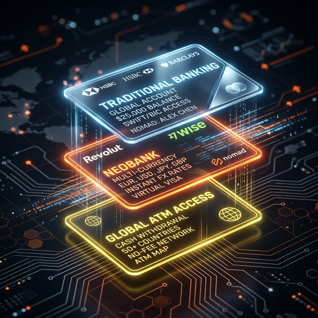 The era of the "Lazy Nomad" is over. In 2026, financial sovereignty requires active management. By building a 3-layer stack—anchored in tradition, operated through digital-first neobanks, and fueled by global-liquidity cashiers—you create a financial fortress that moves with you.